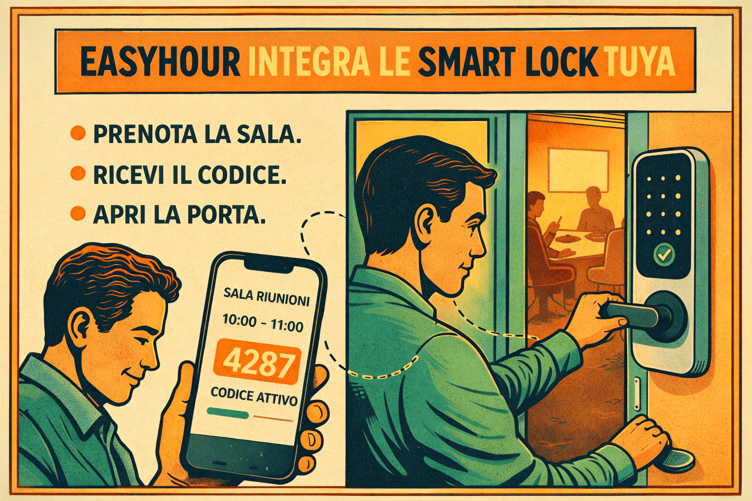 Da oggi, prenotare una sala può significare anche ottenere automaticamente il codice per aprirla.